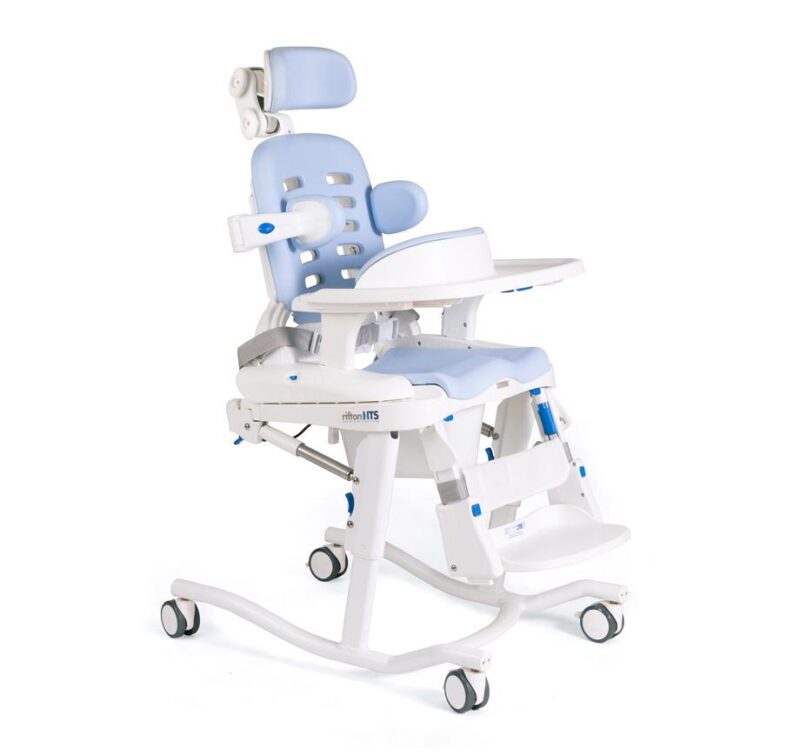 The Rifton HTS (Hygiene & Toileting System) is a versatile positioning chair designed for toileting, hygiene care, and shower use.